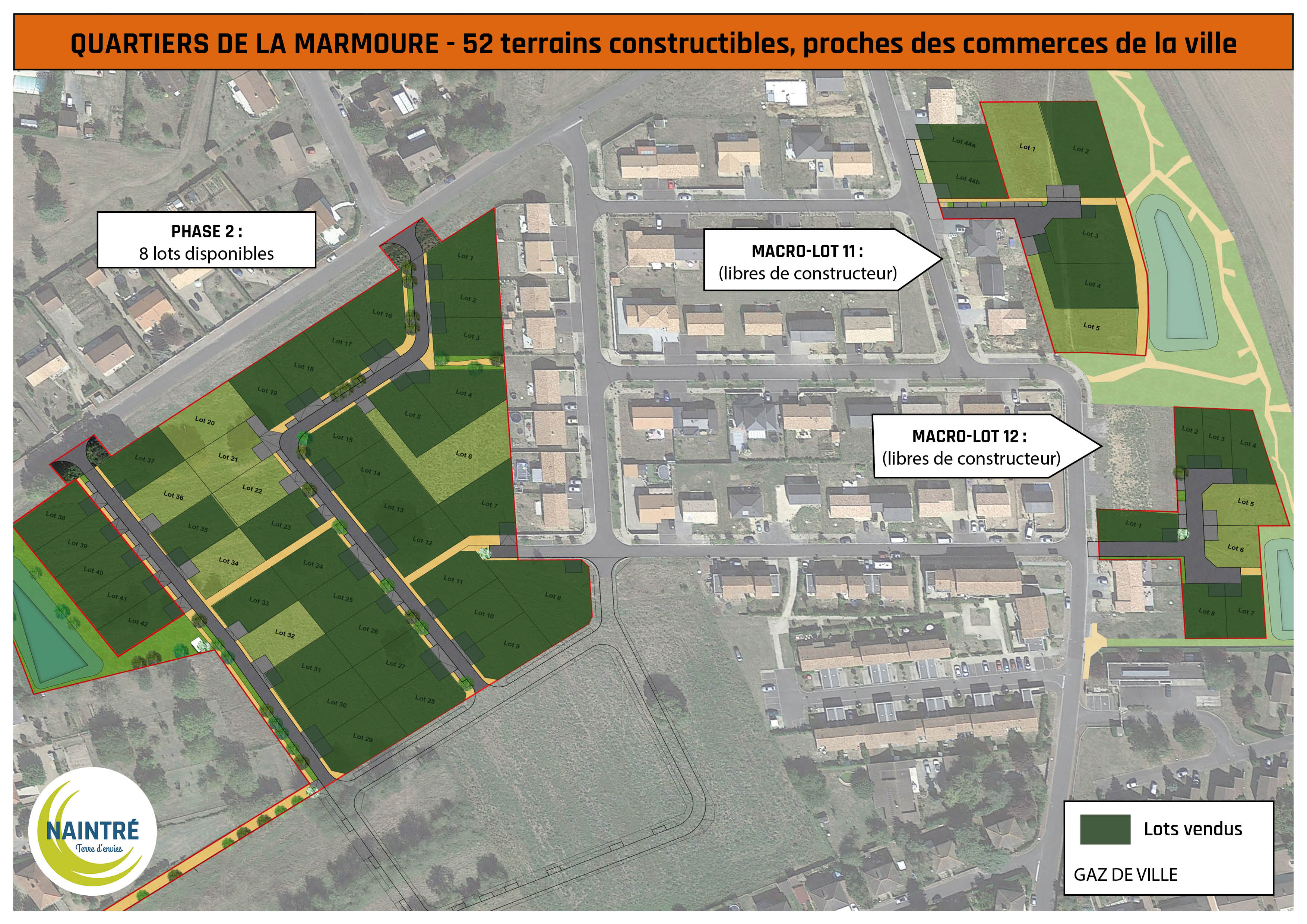 Cette tranche prévoit l’aménagement de 40 lots et 1 macro-lot. Les travaux de viabilisation (voirie, réseaux d’eau, d’électricité et d’assainissement) ont commencé et se prolongeront jusqu’en janvier 2026. La superficie des lots est comprise entre 378 m2 et 672 m2 et sont libres de constructeur.